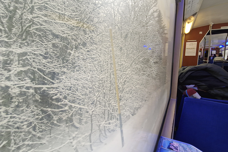 Ver el paisaje nevado desde las ventanillas sabiendo que vas de camino a la cabaña de Papá Noel es una sensación muy entrañable, seas muy navideño o un poco grinch. Los trenes panorámicos suizos suelen tener grandes ventanas y por cierto también son mucho más caros que éste tren. El de Rochers-de-Naye es de formato pequeño y tradicional, pero también se consiguen ver bonitas vistas.